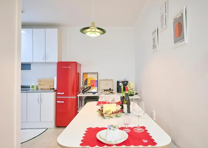 旅客可以使用住宿内的设施齐全的厨房. 别墅距离首尔大学地铁站仅有5分钟的步行路程.